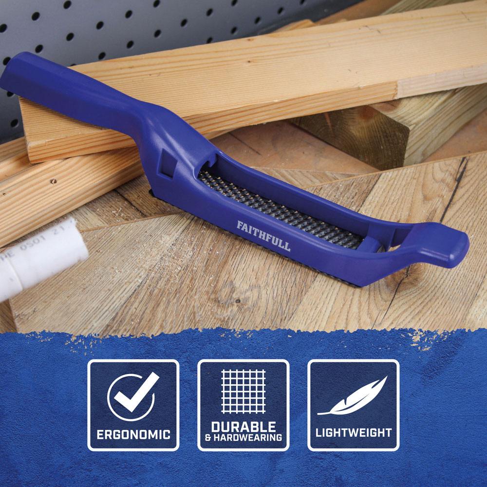The lightweight and strong ABS plastic body design allows this rasp to be used with a single or dual handed operation for fast stock removal.