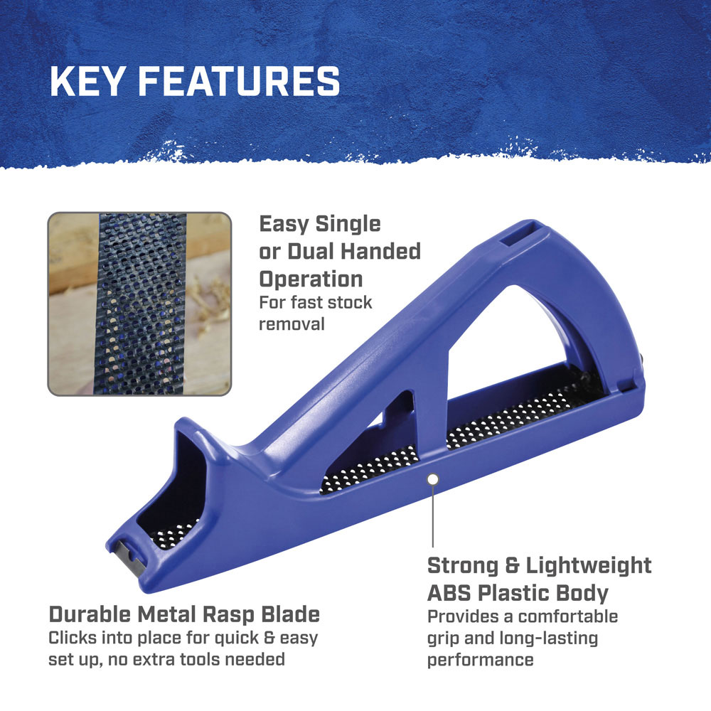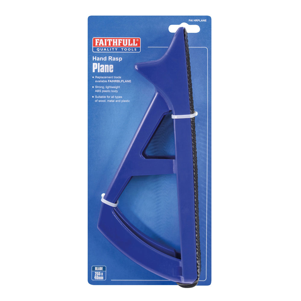 The Faithfull Hand Rasp Plane is suitable for removing material from all types of wood, aluminium, plastics, fibreglass and laminates. It can also be used for plaster and filler removal.
