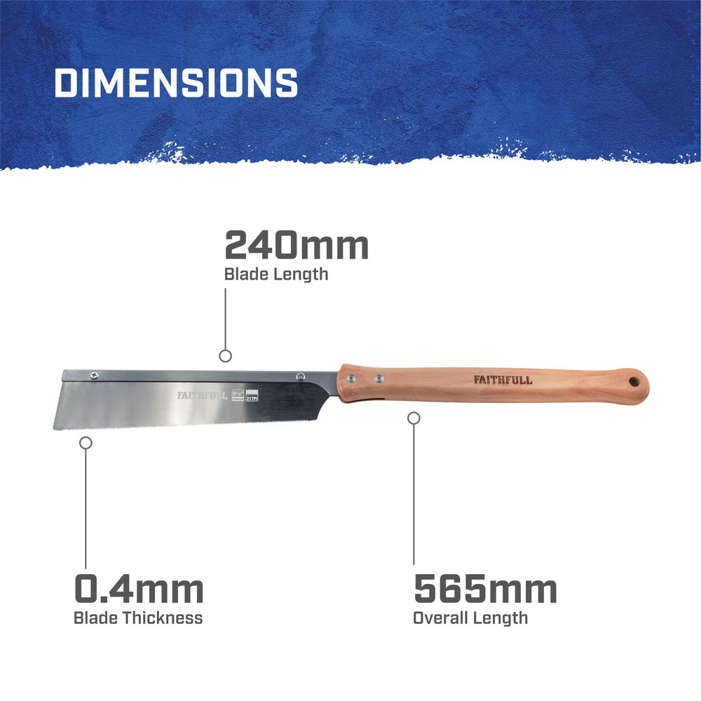 The Faithfull Back Pull Saw is an ideal tool for woodworking and precision cutting. It's blade boasts a fine 21-teeth per inch design that is triple-ground, providing a smooth cut and a longer lifespan.