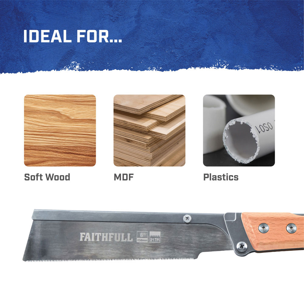 The Faithfull Back Pull Saw is an ideal tool for woodworking and precision cutting. It's blade boasts a fine 21-teeth per-inch design that is triple-ground, providing a smooth cut and a longer lifespan. The blade is constructed using SK5 steel and features a chemical nickel plating that enhances it's resistance to wear and corrosion.